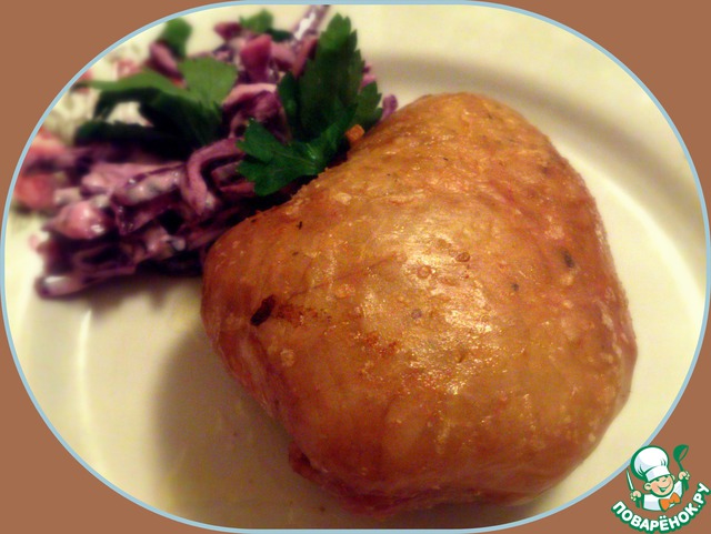 Куриная кожа, фаршированная картофелем