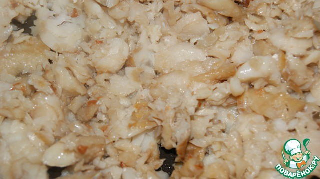 Дать остыть на сковороде и размять вилкой на небольшие кусочки.