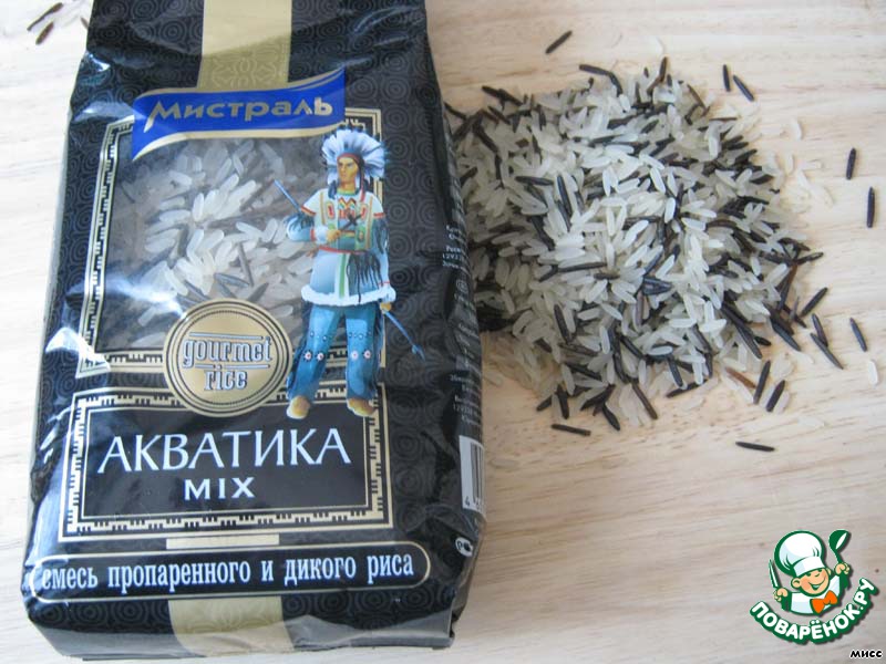 Креольцы утверждают, что настоящую джамбалайю готовят именно из дикого риса. Мы возьмём для приготовления Акватика mix от "Мистраль". Это смесь пропаренного и дикого риса.