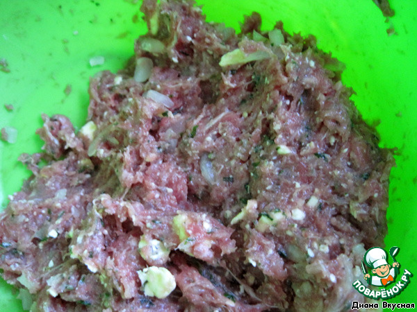Фарш у меня не жирный, пресный, поэтому я в него положила масло,