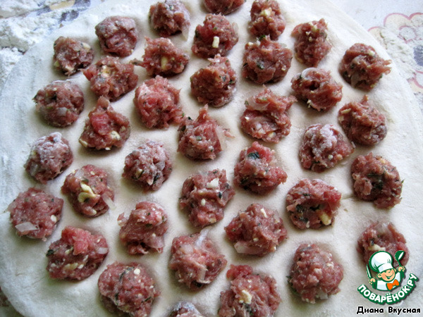 и накрутила хинкалек (когда фарш пресный, добавляю воду и масло, чтоб хинкали был сочным)