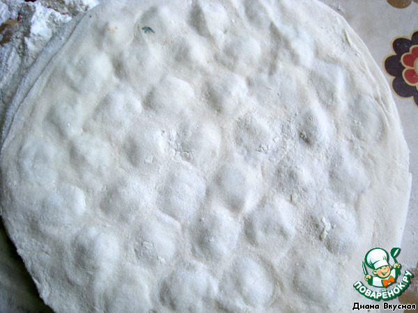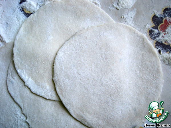раскатала из теста крупненькие пласты диаметром примерно 15-20см