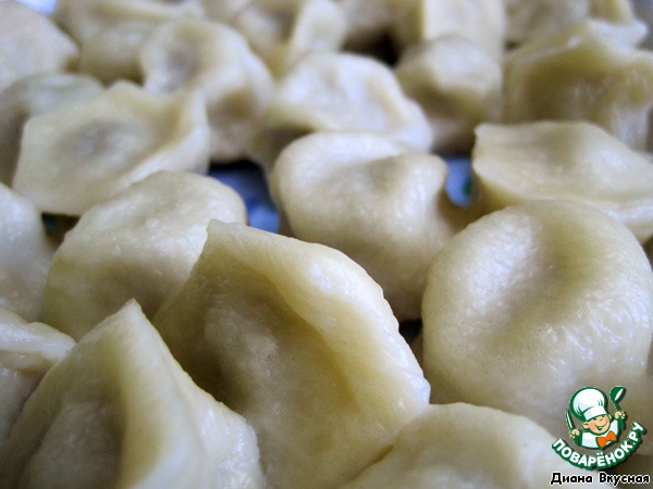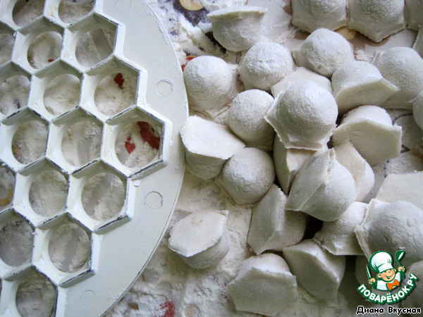 раскатала пласт и с помошью пельменницы, таким вот способом, налепила пельмешек (поэтому все - как один :))