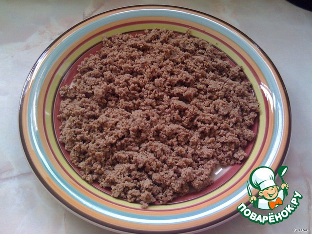 Фарш обжарить с луком, черным перцем, солью, и пропустить через мясорубку готовую массу, чтобы стала нежнее.