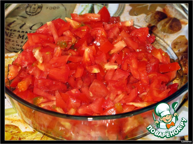 Подготовить овощи. Морковь нарезать соломкой, репчатый лук и помидор кубиками, лук-порей кольцами.