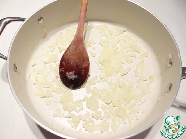 Обжариваю лук до мягкости на оливковом масле.