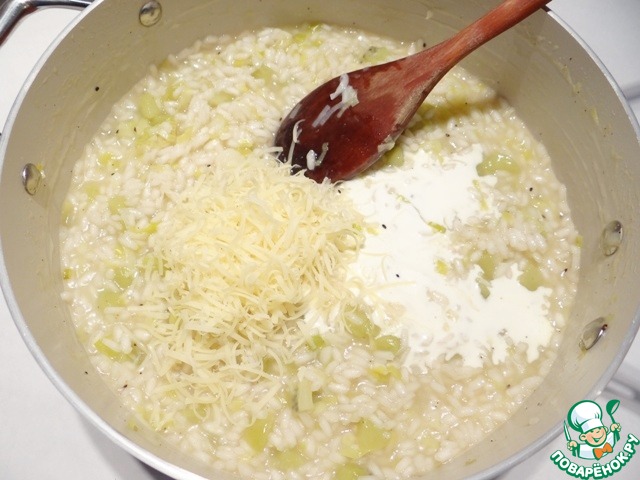 Затем добавляю сливки, тертый пармезан. Ризотто хорошо перемешиваю, снимаю с плиты и сразу подаю, украсив кружочками киви. Приятного Вам аппетита!