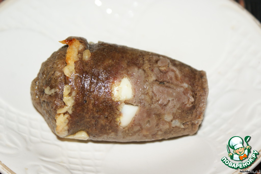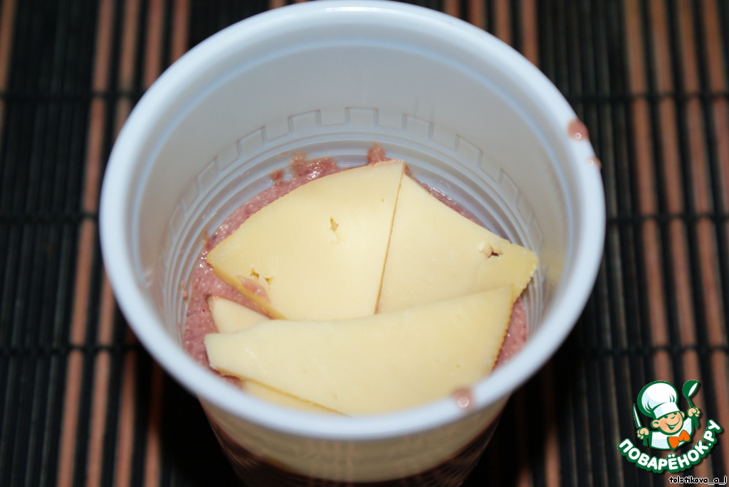 На печень - дольки сыра и завершаем 1 ст.л. печени.