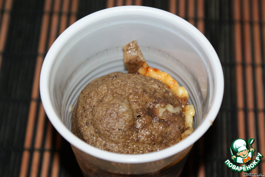 Отправляем стаканчик с печенью в микроволновку на 1000 ватт всего на 4 минуты.