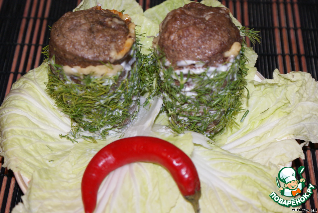 И выкладываем на "полянку" из листьев китайской капусты.