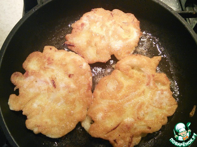 Выкладываем столовой ложкой на разогретую сковородку и жарим на растительном масле до золотистого цвета с обеих сторон.