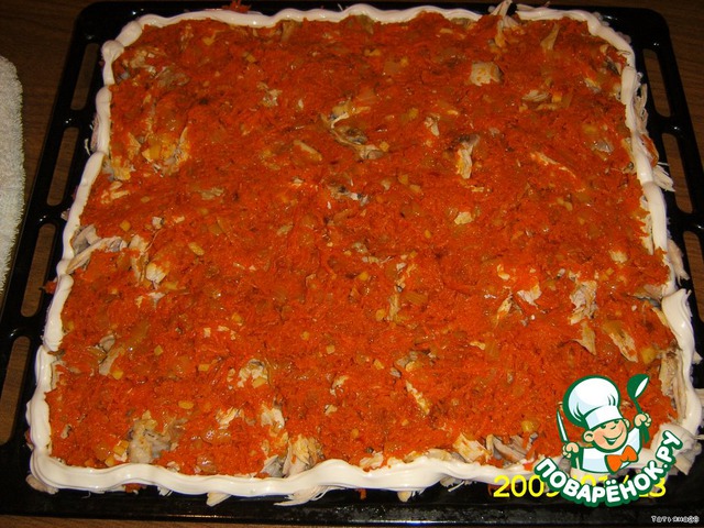 На курицу выкладываем морковь с луком и с хреновиной. И отправляем в нагретую духовку до 160-170 градусов минут на 15-20-ть.