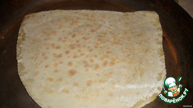 С помощью маленькой доски переложите чуду в сковородку заранее разогретую, жарьте на маленьком огне, сверху накройте крышкой.