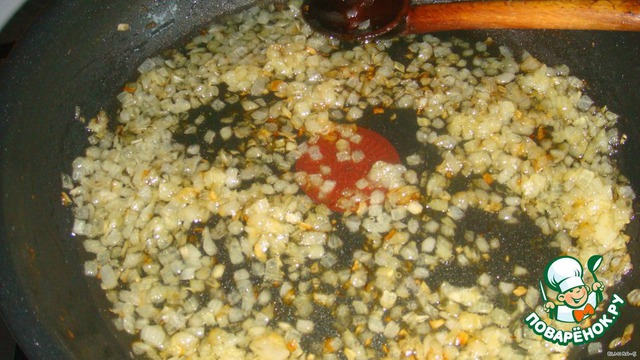 Лук измельчите и обжарьте до золотистого цвета, орехи почистите и измельчите в процессоре.