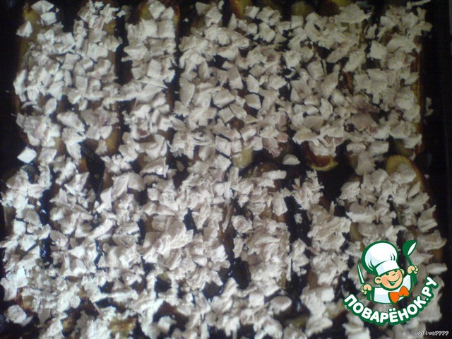 сверху на баклажаны разложить грудку равномерно.