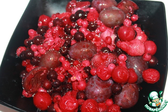 Подготавливаем ягодное ассорти. У меня замороженная компотная смесь. Можно использовать любые любимые вами ягоды.