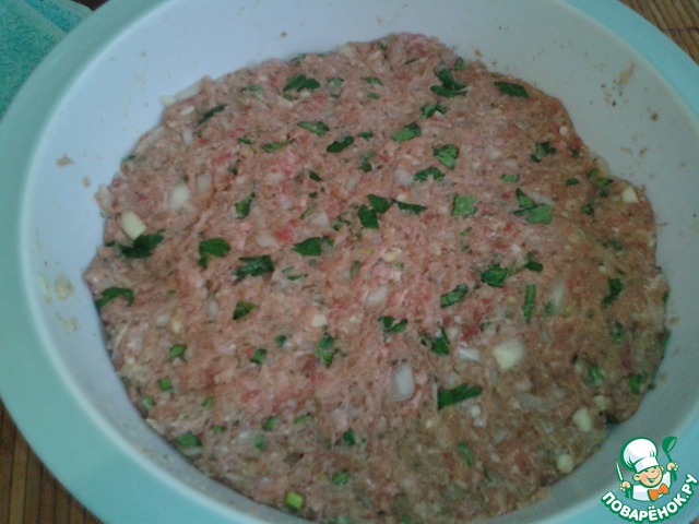 Хорошенько руками вымесить фарш, накрыть полотнцем, поставить в прохладное место на 1 час.