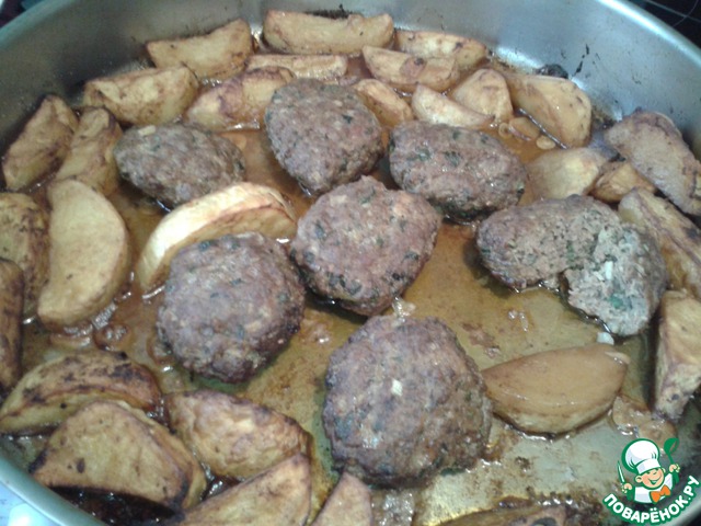 В противень налить растительное масло, добавить воды, уложить котлетки. Я одновременно готовила гарнир- картофель с паприкой- блюдо, традиционное для Болгарии. Поставить в духовку 180 (200)' на 15-20 мин.