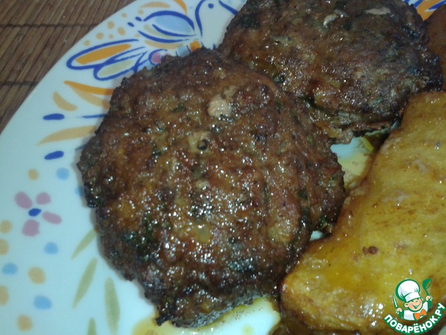 Готовые котлети красивого цвета, внутри очень сочные. Рецепт гарнира не пишу, так как на сайте такой есть. Единственное, что картофель там бледненький, я рекомендую чуть дольше его запечь.