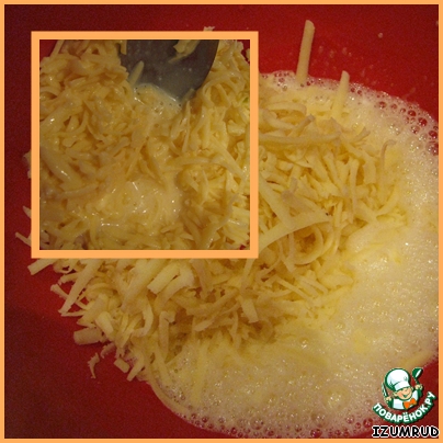 Добавить натёртый на крупной тёрке сыр и перемешать.