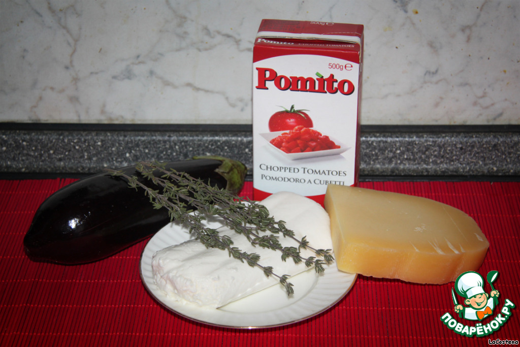 Наши простые продукты: баклажан, томаты. 2 вида сыра и тимьян.