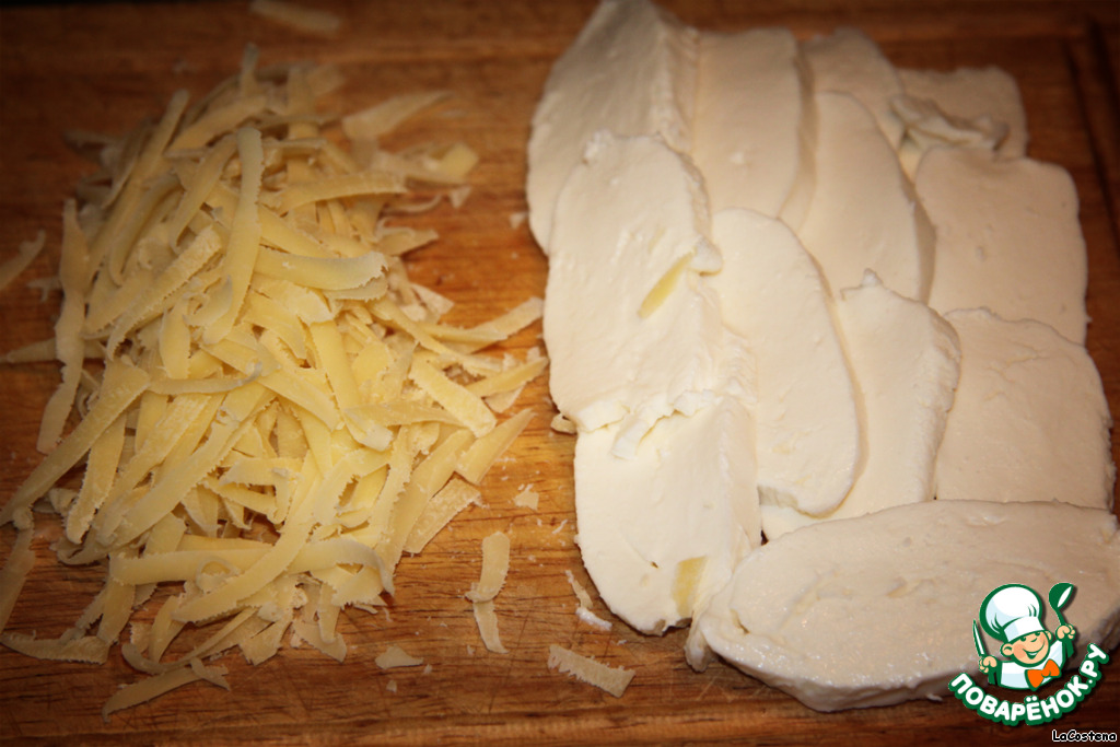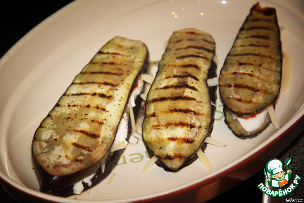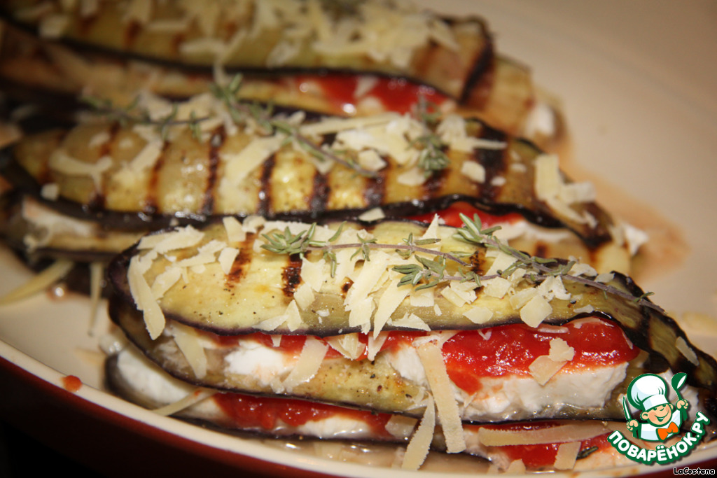 Накрыть ломтиком баклажана и повторить еще один слой.