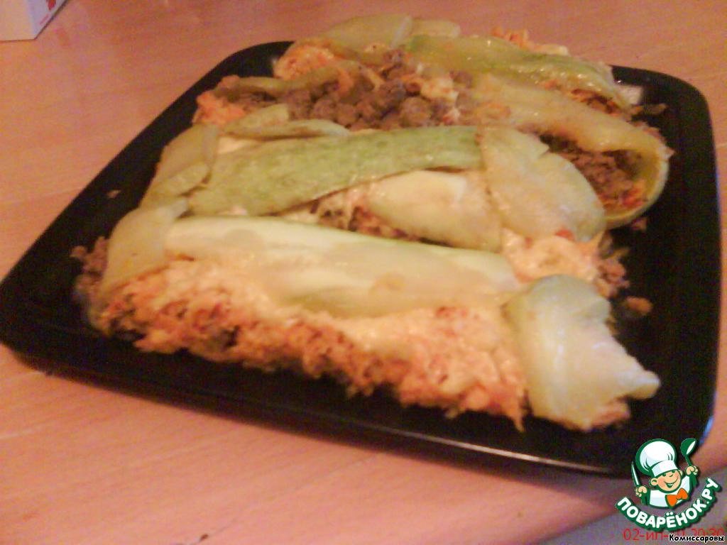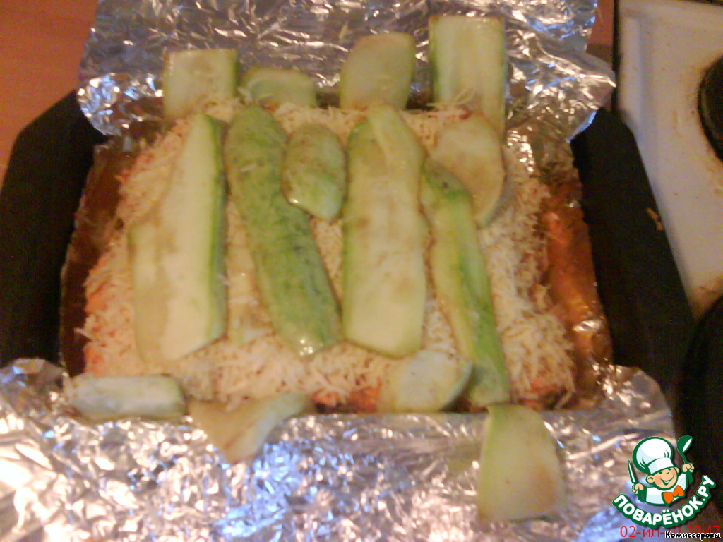 Сверху закрыть ломтиками цукини.
