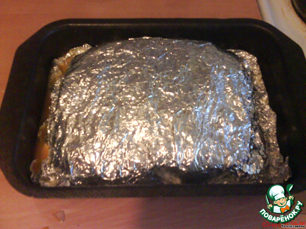Фольгу закрыть, поставить в разогретую духовку на 15 минут. Температура 220 градусов.