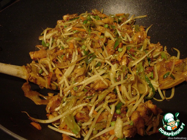 Теперь – овощи и обжариваем 3 минуты, они должны остаться хрустящими.