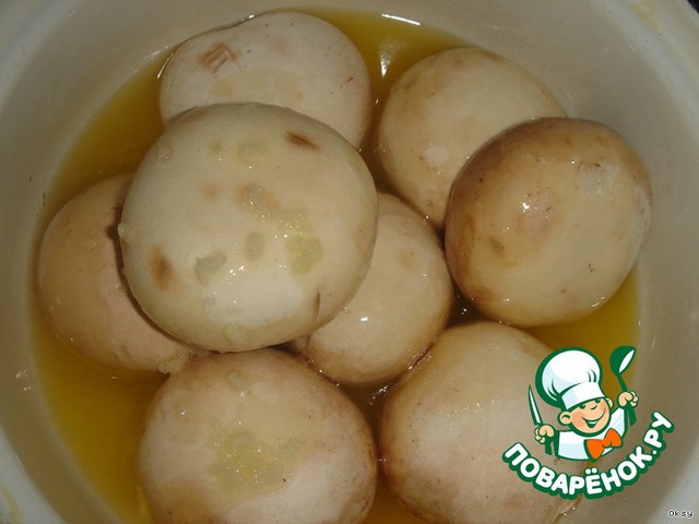 Я в процессе маринования 1 раз переворачивала грибы и налила маринад ложечкой прямо в шляпки.