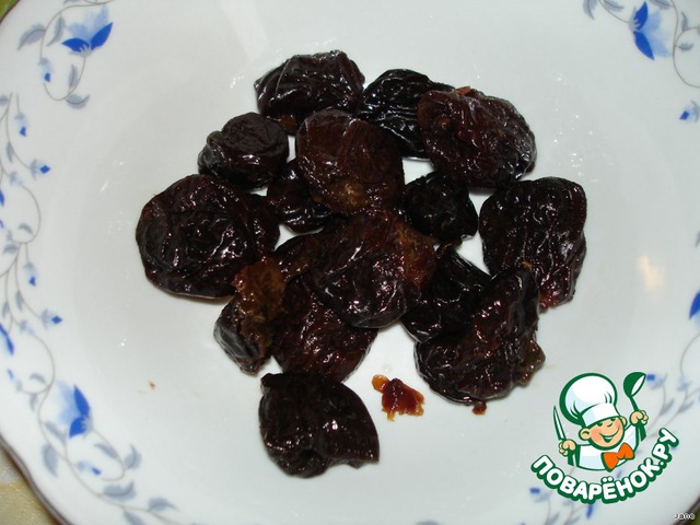 Затем лук и 2 "ягодки" чернослива.