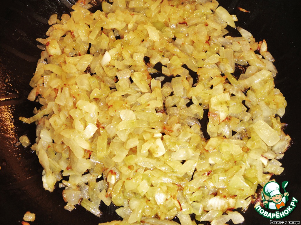На сливочном масле обжариваем мелконарезанный репчатый лук.