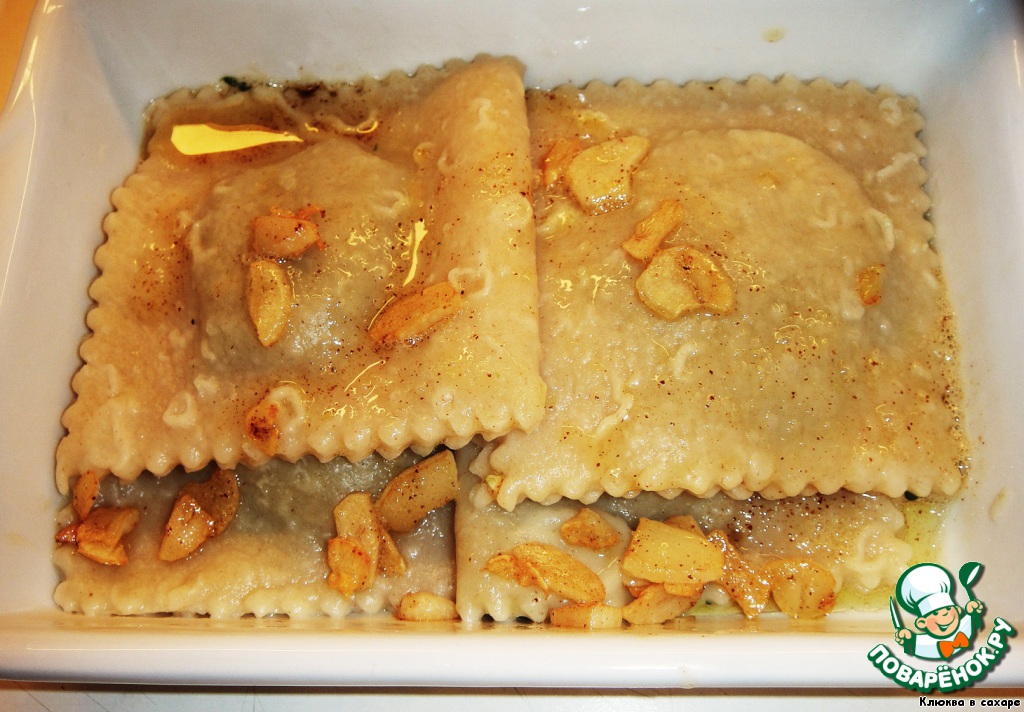 Накрываем второй половиной теста, слегка придавливая «бороздки» между начинкой.