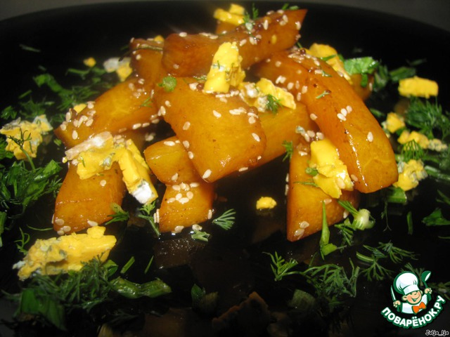 | Продолжая свои эксперименты с тыквой, придумалось мне вот такое блюдо. Готовить совсем не сложно, а даже очень просто, но вкус - потрясающий!!! На конкурс "Яркое настроение". |