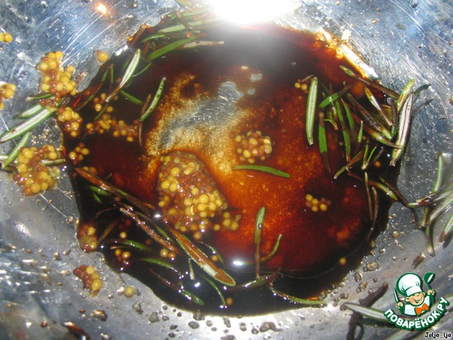 Для маринада, смешаем мёд и уксус (1 ст. ложку).