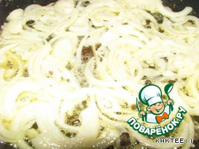 Добавляем грибы. Немного солим, перчим, карри добавляем.