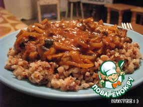 Гречку в тарелку, сверху грибы. Можно сыром посыпать по желанию:)