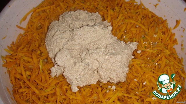 Орехи,соль,перец перемешайте с натёртой тыквой