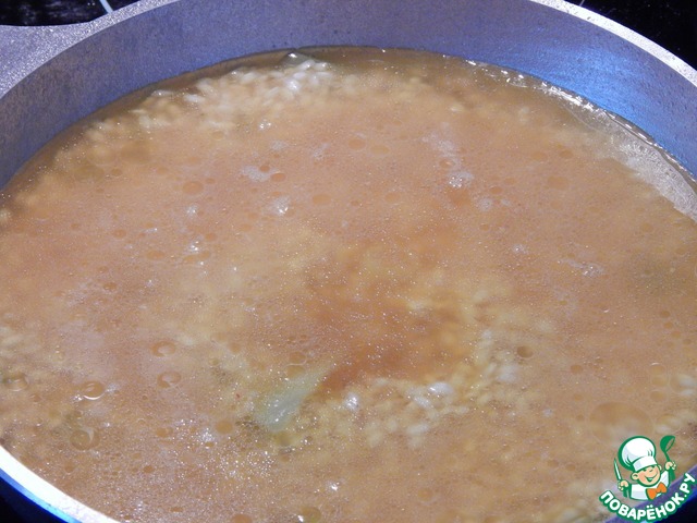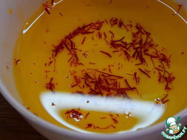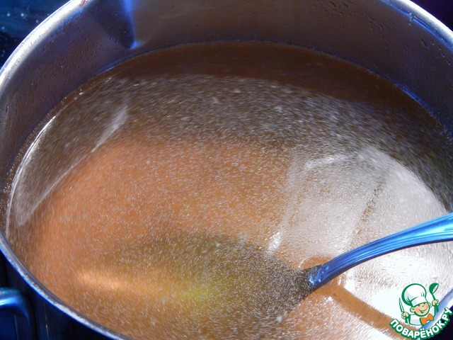 Бульон перемешиваем с пивом и шафрановой водой, ставим на огонь, помешивая доводим до кипения.