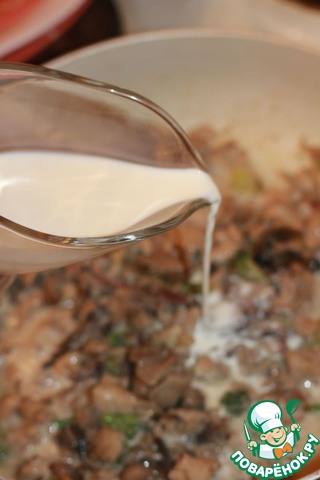 Теперь влейте сливки, посолите и поперчите по вкусу. Готовую смесь охладите, после чего поставьте на 20 минут в холодильник для загустения.