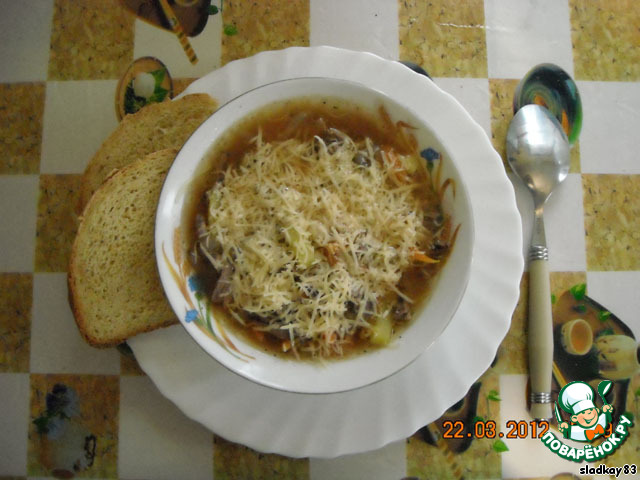 При подаче посыпать зеленью петрушки и тертым сыром.