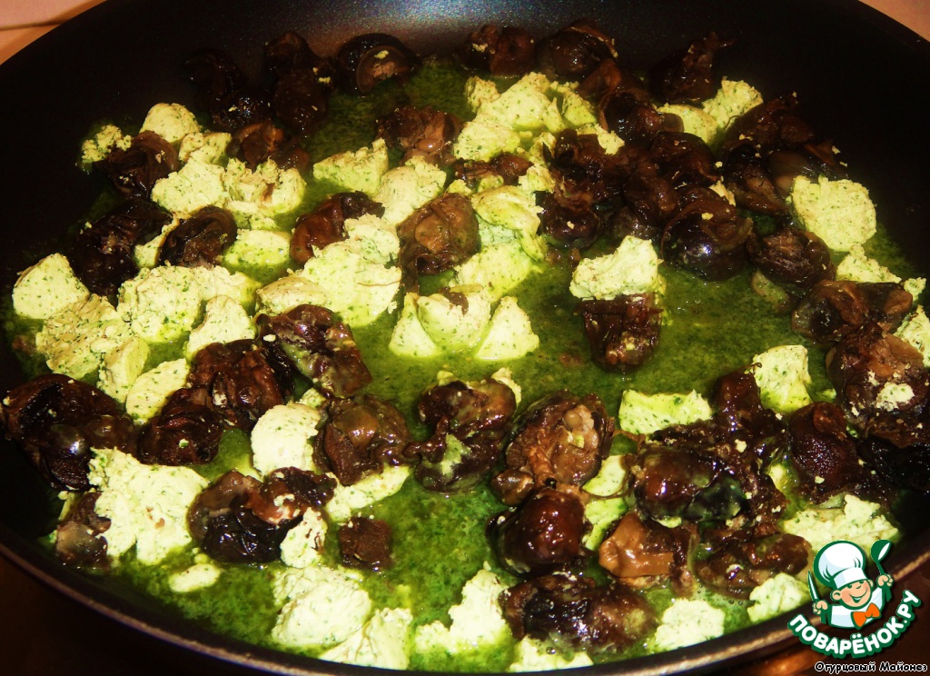 Выкладываем улитки на сковородку и обжариваем со сливочным маслом (на травах и чесноке) минимум в течение 10 минут, так как они должны основательно прожариться.