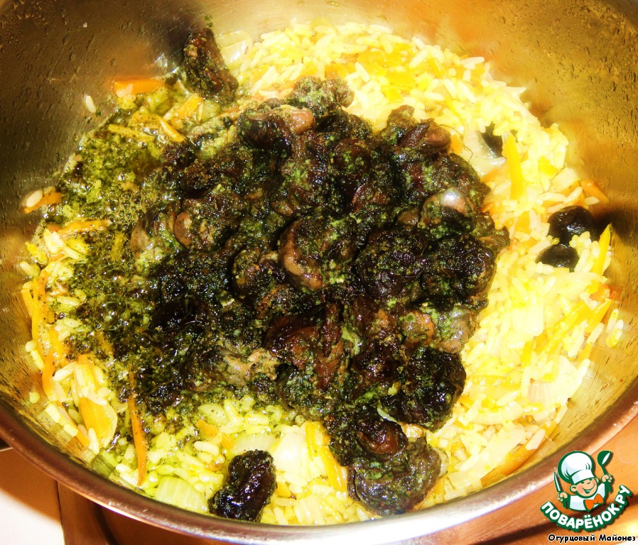 И наконец, выкладываем сверху улитки вместе с растопленным сливочным маслом. Можно немного посолить. Оставляем под крышкой ещё на пять минут, после чего подаём к столу.