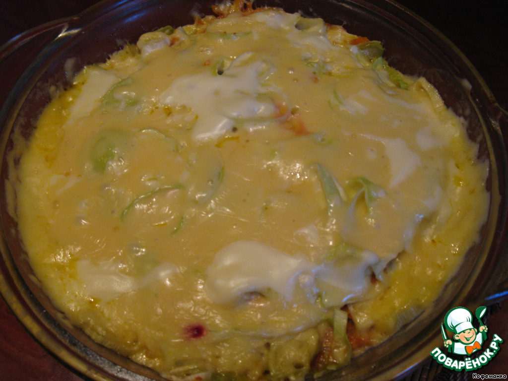 Рыбка под овощной "шубкой" в омлете