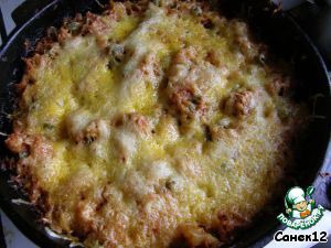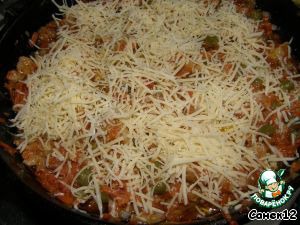 Посыпать тёртым сыром и поставить в духовку на 40 минут или до готовности сыра