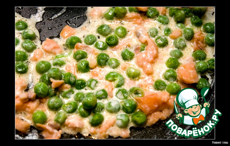 Фарфалле с лососем и зелeным горошком (Farfalle con salmone e piselli)