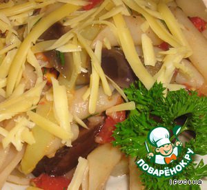 Посыпать сыром.