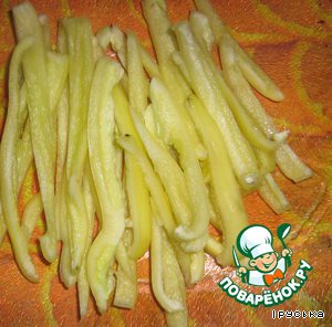 Отдельно обжарить нарезанный соломкой перец.