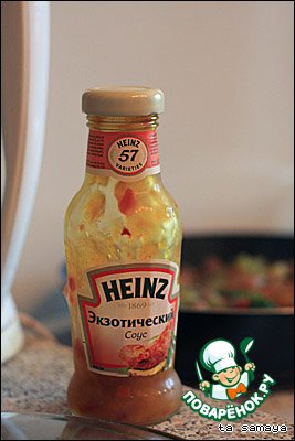 После того, как овощи почти готовы, посыпаем базиликом, тмином, приправляем кисло-сладким соусом.