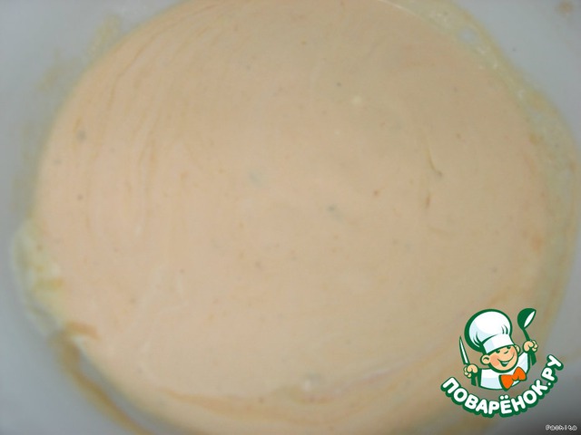 Для соуса смешать сметану с яйцом, кетчупом, взбить.